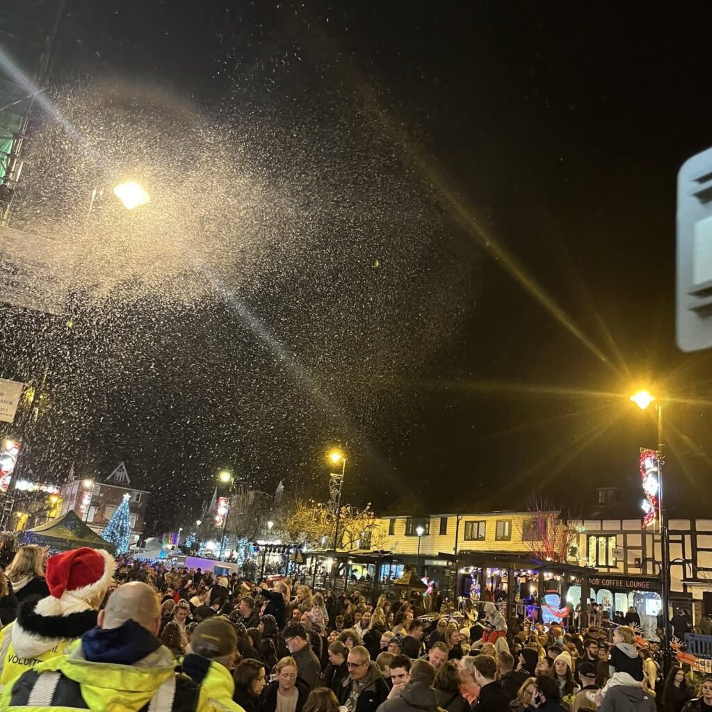 Christmas in East Grinstead starts on a Saturday in the middle of November when the Christmas lights are turned on. The night before, shops and businesses decorate their windows then cover them with brown papers in preparation for the BIG REVEAL on Saturday evening.