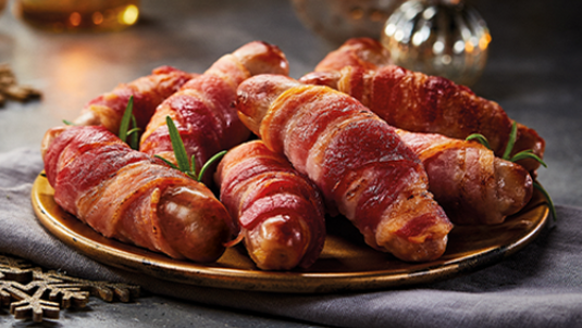 Traditionally, Christmas is turkey with pigs in blankets (not the US pig in a blanket, but small sausages wrapped in bacon), chestnut stuffing, Yorkshire pudding, roast potatoes and Brussels sprouts with chestnuts and bacon, and carrots – with turkey gravy.